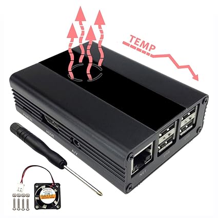 Eleduino Raspberry Pi 3 B Aluminum Case Enclosure With Dual Active Cooling Fan Black Aluminum Case