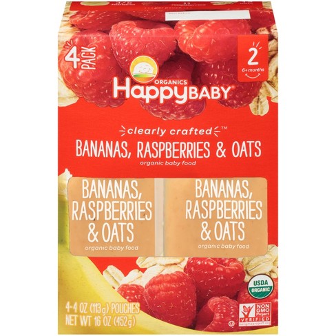 Happy Baby Clearly Crafted Bananas Raspberries Oats 4oz 4ct