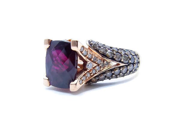 Le Vian Red Raspberry Rhodolite Garnet 3 Ct Tw W Chocolate Diamond 1 1 5 Ct T W And White Diamond Accent Ring In 14k Rose Gold