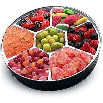 Candy Gift Platter Peach Slices Grapefruit Gummy Bears Orchard Petite Fruit Red Black